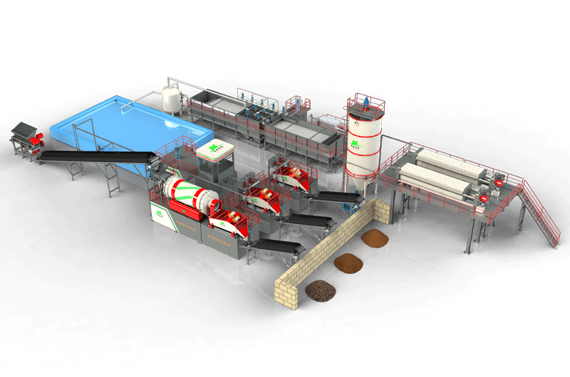 擦洗(淋洗)分選系統是借助能促進污染土壤中污染物溶解或遷移的化學/生物化學溶劑對前段破碎篩分后的污染土進行洗凈處理,將附著于土壤顆粒表面固相低濃度污染物轉移至液相,使污染組分進入液相狀態,全球便于后續集中處理。洗脫廢水再經水處理系統對污染物做進一步回收處理,水處理后固廢單獨處理,處理水可循環使用。