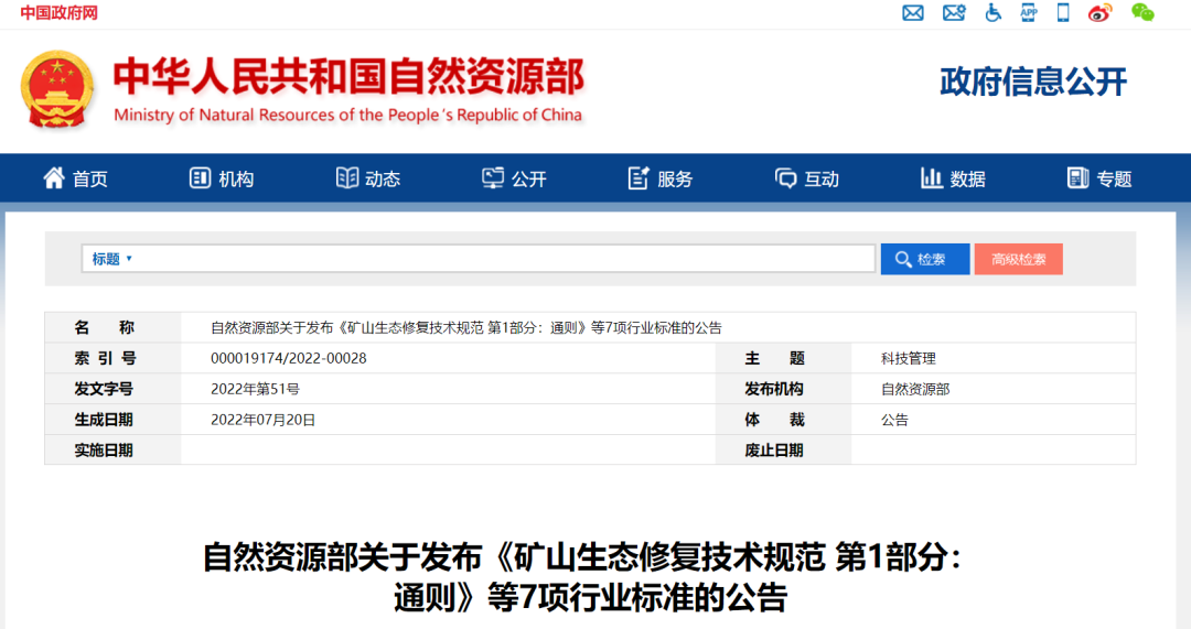 《礦山生態(tài)修復(fù)技術(shù)規(guī)范 第1部分:通則》等7項(xiàng)行業(yè)標(biāo)準(zhǔn)已通過(guò)全國(guó)自然資源與國(guó)土空間規(guī)劃標(biāo)準(zhǔn)化技術(shù)委員會(huì)審查,現(xiàn)予批準(zhǔn)、發(fā)布,自2022年11月1日起實(shí)施。標(biāo)準(zhǔn)編號(hào)及名稱如下:
