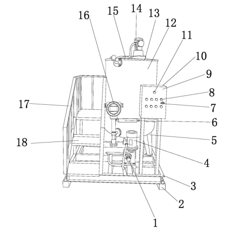 高土壤修復、可測溫用加注 設備,包底座、行走輪、殼體和防滑把手,殼體的內部安裝有蓄電池組,蓄電池組的 一側安裝有空氣壓力泵,空氣壓力泵的一側安裝有儲藥箱,儲藥箱的一側安裝有 電機,安裝支架的底端通過轉軸安裝有翻土滾筒,送藥管道的底端安裝有灑布桿, 灑布桿上方的送藥管道上安裝有開關閥門,灑布桿一側的底座底部安裝有行走 輪,行走輪一側的底座底部固定有安裝板,且安裝板的底部通過鉸接軸安裝有撫平板。 該發明加注裝置結構創新,通過設置翻土滾筒和帶有刻度表觀察窗的儲藥箱,使加注藥劑 更加的準確、更合理,既能夠實現高效的土壤修復工作,又能夠避免藥劑資源的大量浪費,但現 有技術無法檢測溶液箱內部溫度,導致攪拌機機器因溫度過高而停止運行。