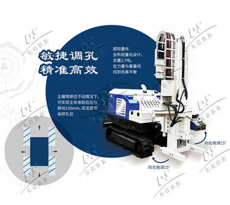 該采樣機的優勢有:1、整機輕量化設計、結構緊湊、靈活調孔;發動機采用原裝日本進口久保田品牌;2、恒定液壓系統、動力十足、快插式液壓接頭、工作裝置拆卸方便、易于維修保養;獨家70P鉆頭、專業微波打擊技術、大功率沖擊動力、提升采樣效率;3、整機實現遠距離無線遙控控制,可在空間狹小、地質松散的復雜地域作業,方便現場作業;4、采用三角形行走履帶裝置,在污染場地通過性更強。