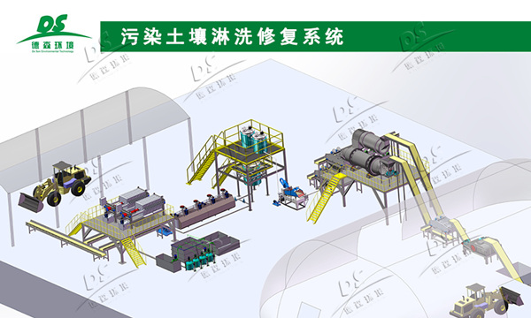 污染土壤淋洗修復(fù)主要是借助能促進土壤中污染物溶解或遷移的化學/生物溶劑,通過一系列物理、化學的綜合處理工藝對污染土壤進行洗潔修復(fù)處理,將附著于土壤顆粒表面的重金屬由固相低濃度污染物轉(zhuǎn)移至液相,以便于后續(xù)集中處理。土壤中砂石骨料經(jīng)淋洗分級處理后可回收利用,淋洗泥漿經(jīng)脫水后泥漿固料若檢驗達標可安全回填、或進入熱脫附修復(fù)系統(tǒng)進一步處理,脫水后廢液進入水處理系統(tǒng)集中處理。整套淋洗修復(fù)系統(tǒng)可最大程度實現(xiàn)對污染土壤的減量化綜合處理。