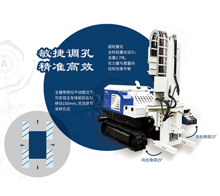 2、恒定液壓系統、動力十足、快插式液壓接頭、工作裝置拆卸方便、易于維修保養;獨家70P鉆頭、專業微波打擊技術、大功率沖擊動力、提升采樣效率;